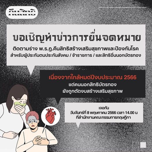 หลังจากย่างเข้าเดือนที่ 8 ของปีงบ 2566 แล้วไม่มีความคืบหน้าเรื่องการคืนสิทธิสร้างเสริมสุขภาพและป้องกันโรค อีกทั้งตั้งแต่ 14 มีนาคม ที่ สปสช. นำเรื่องการตราพระราชกฤษฎีกาเข้า ครม. จนถึงปัจจุบันเรื่องยังคาอยู่ที่กฤษฎีกา ทำให้สปสช. ยังคงค้างจ่ายหน่วยงานที่ให้บริการไปแล้ว และคนนอกสิทธิบัตรทองต้องจ่ายค่าบริการเอง