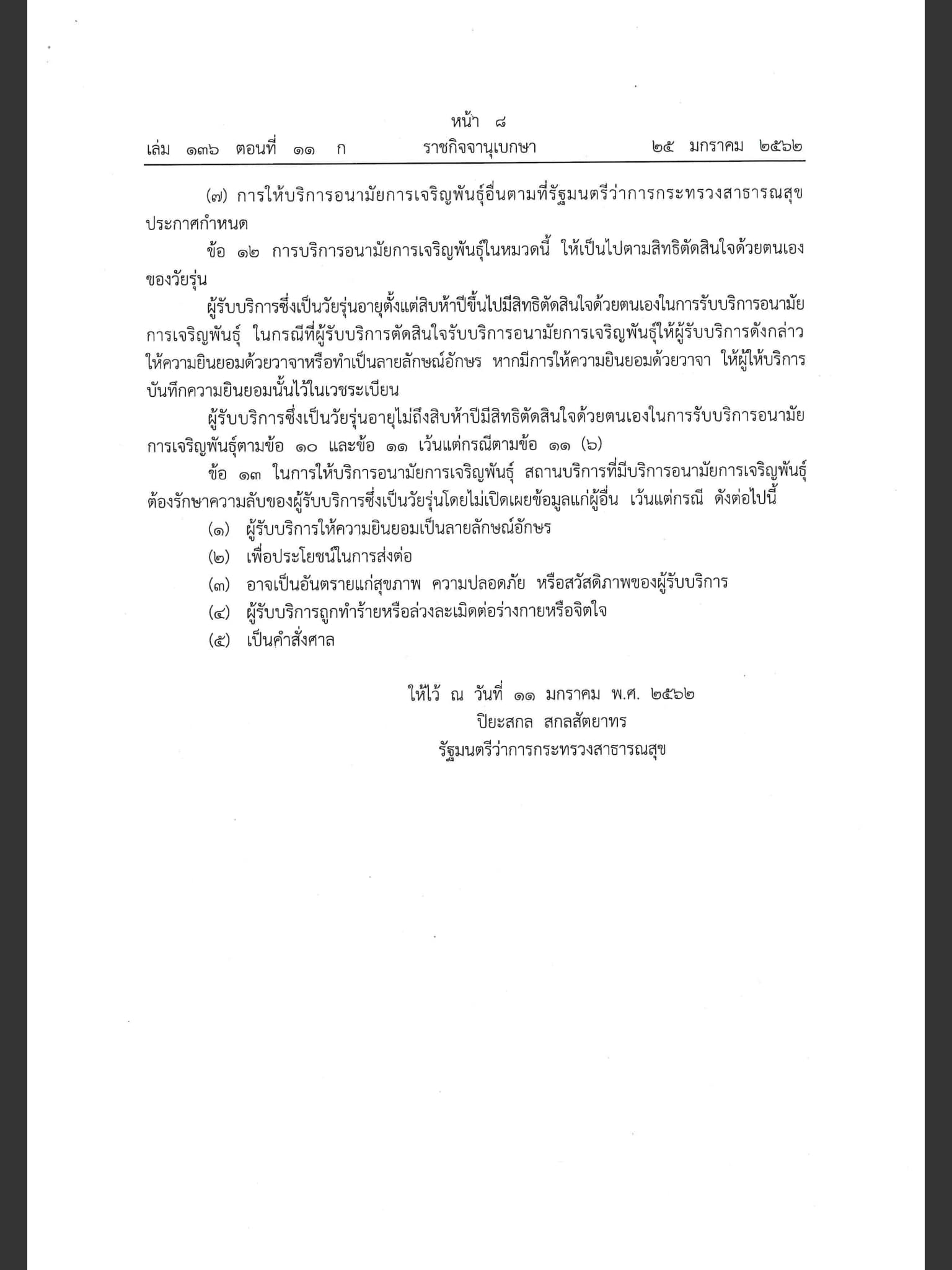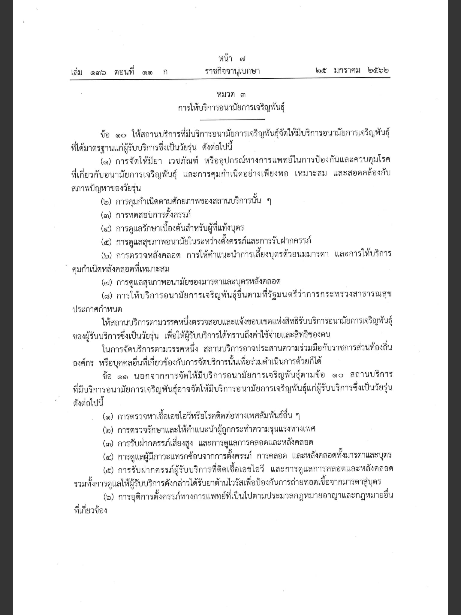 1. ตามกฎหมายเรื่องนี้ กำหนดไว้ชัดเจนว่า วัยรุ่น คืออายุเกิน 10 ปี แต่ไม่ถึง 20 ปี และวัยรุ่นมีอำนาจในการตัดสินใจด้วยตนเองในการเข้ารับบริการอนามัยเจริญพันธุ์ ซึ่งรวมถึงการคุมกำเนิด (บริการอนามัยเจริญพันธ์ุมีอะไรบ้าง ให้ดูตามรูปสอง)