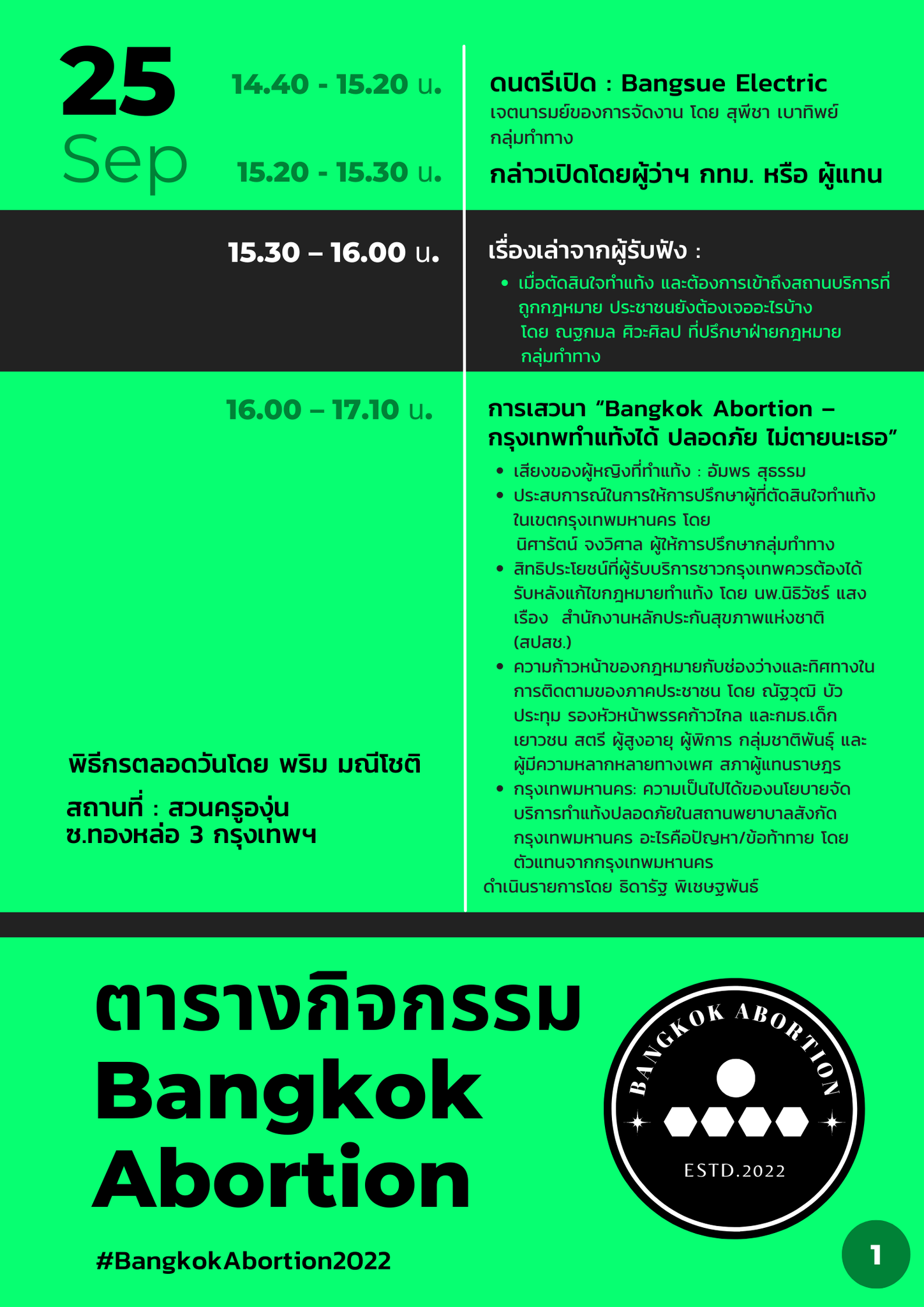 UPDATE กิจกรรม Bangkok Abortion วันอาทิตย์นี้ ล่าสุด !