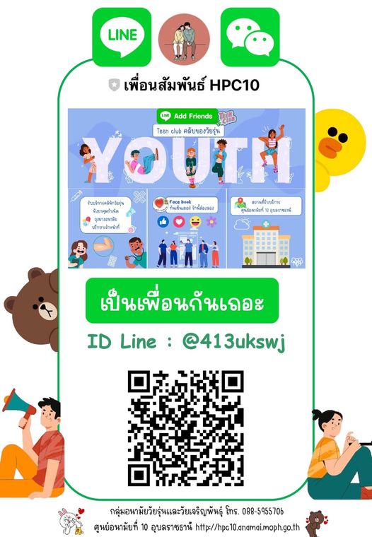 🤗 ขออนุญาตประชาสัมพันธ์ (ประกาศ) กลุ่มอนามัยวัยรุ่นและวัยเจริญพันธุ์ ศูนย์อนามัยที่ 10 อุบลราชธานี 🥳สร้างช่องทางติดต่อทางไลน์ Account (แชทได้แบบเป็นส่วนตัว) ✅สำหรับวัยรุ่นและผู้รับบริการที่คลินิก ✅ปรึกษาเรื่องการดูแลสุขภาพ และอนามัยการเจริญพันธุ์ ✅รอบรู้สุขภาพ ส...