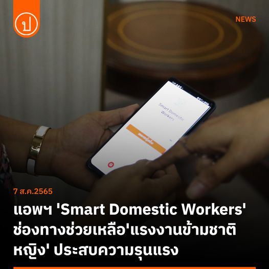 “มูลนิธิเพื่อการพัฒนาแรงงานและอาชีพ” ผุดแอพพลิเคชั่น “Smart Domestic Workers” ช่องทางช่วยเหลือแรงงานข้ามชาติหญิงที่ประสบความรุนแรง เน้นเข้าถึงรวดเร็ว สื่อสารได้โดยตรง แจ้งข้อมูลสำคัญตั้งแต่การแก้ปัญหาเบื้องต้นจนถึงเรื่องร้องเรียน ย้ำกฎหมาย คุ้มครองทุกคนเท่าเทียมกัน ไม่เว้นแม้แต่แรงงานข้ามชาติ ช่วงสถ...