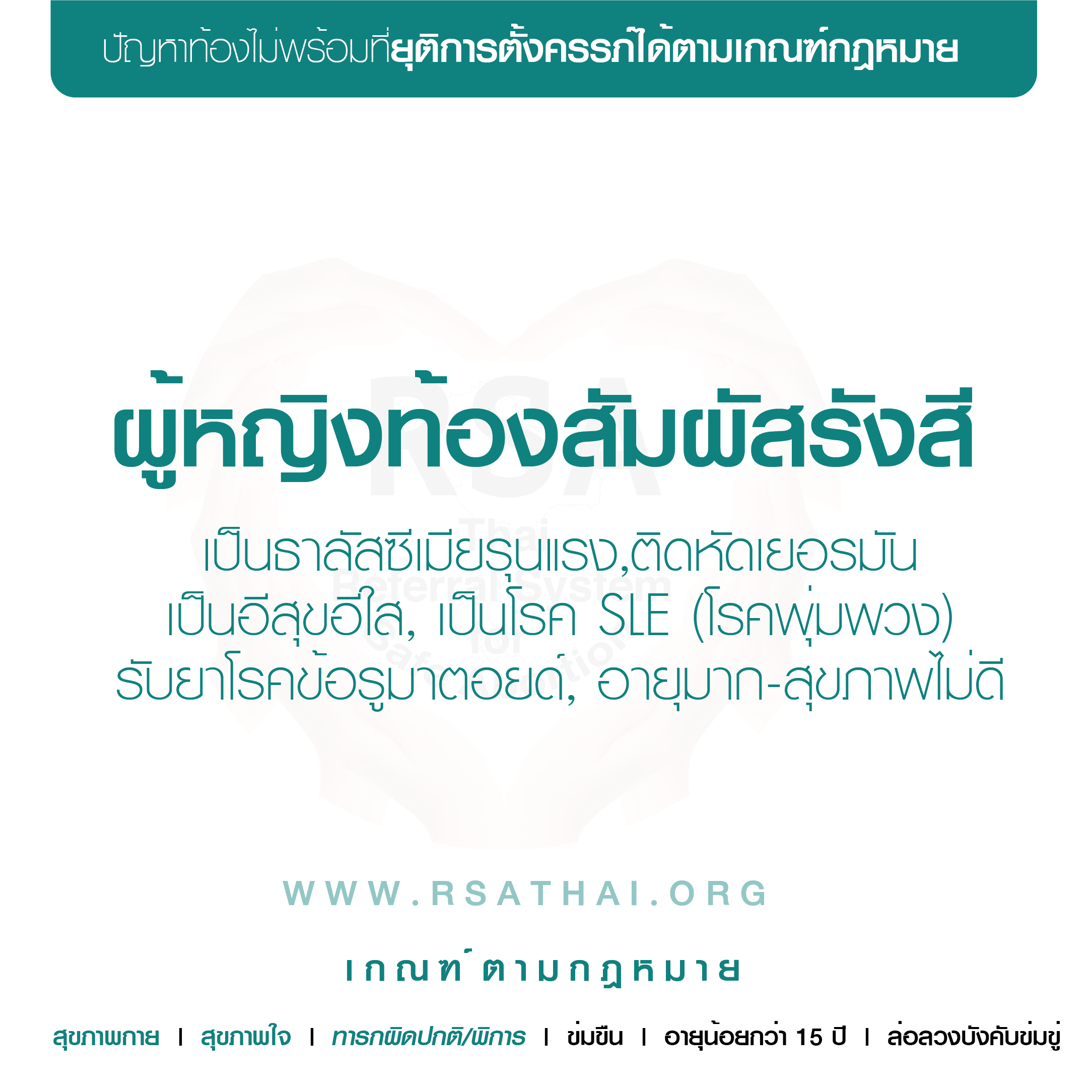 - การตั้งครรภ์ที่เกิดจากการถูกข่มขืนกระทำชำเรา