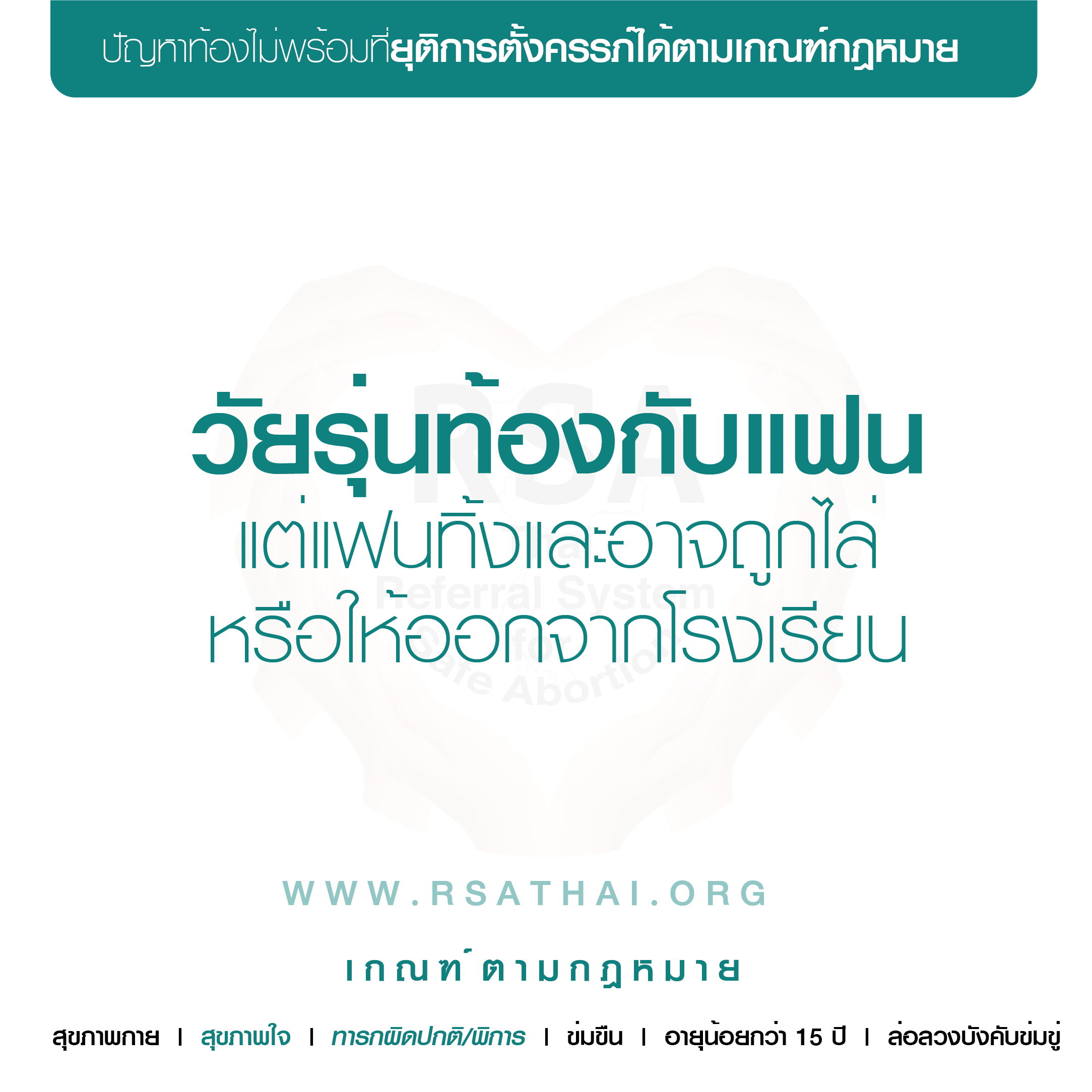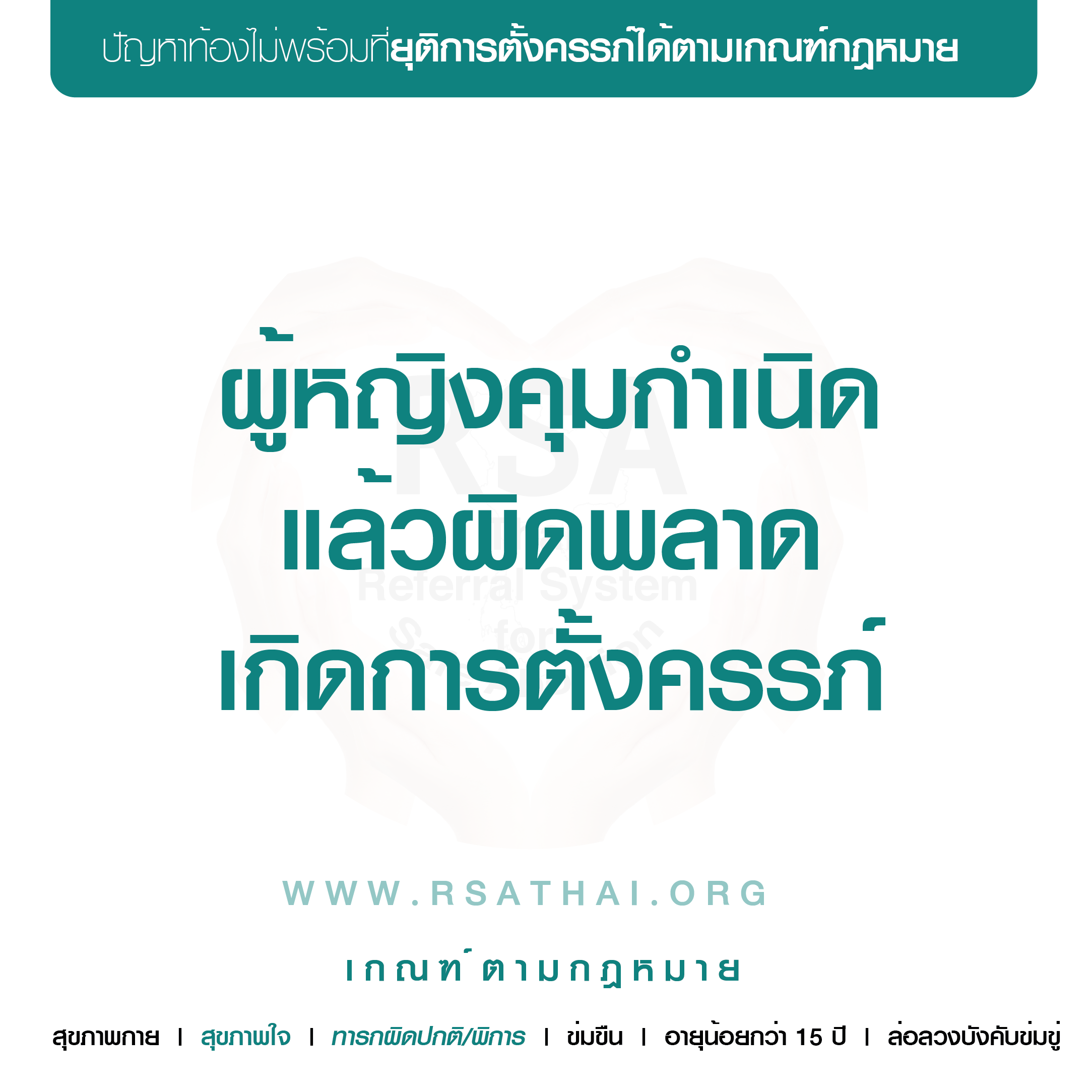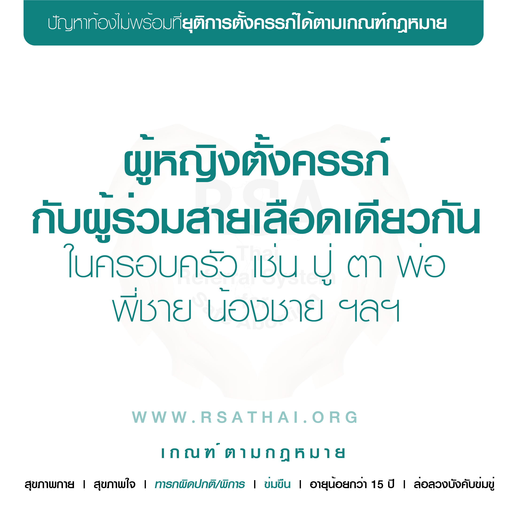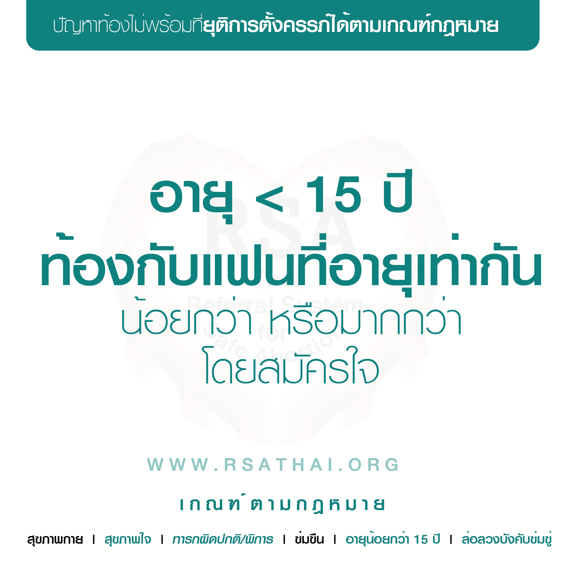 อายุ > 15 ปี ถูกข่มขืนแล้วท้องโดยคนในครอบครัว, คนใกล้ตัว, หรือผู้อื่น