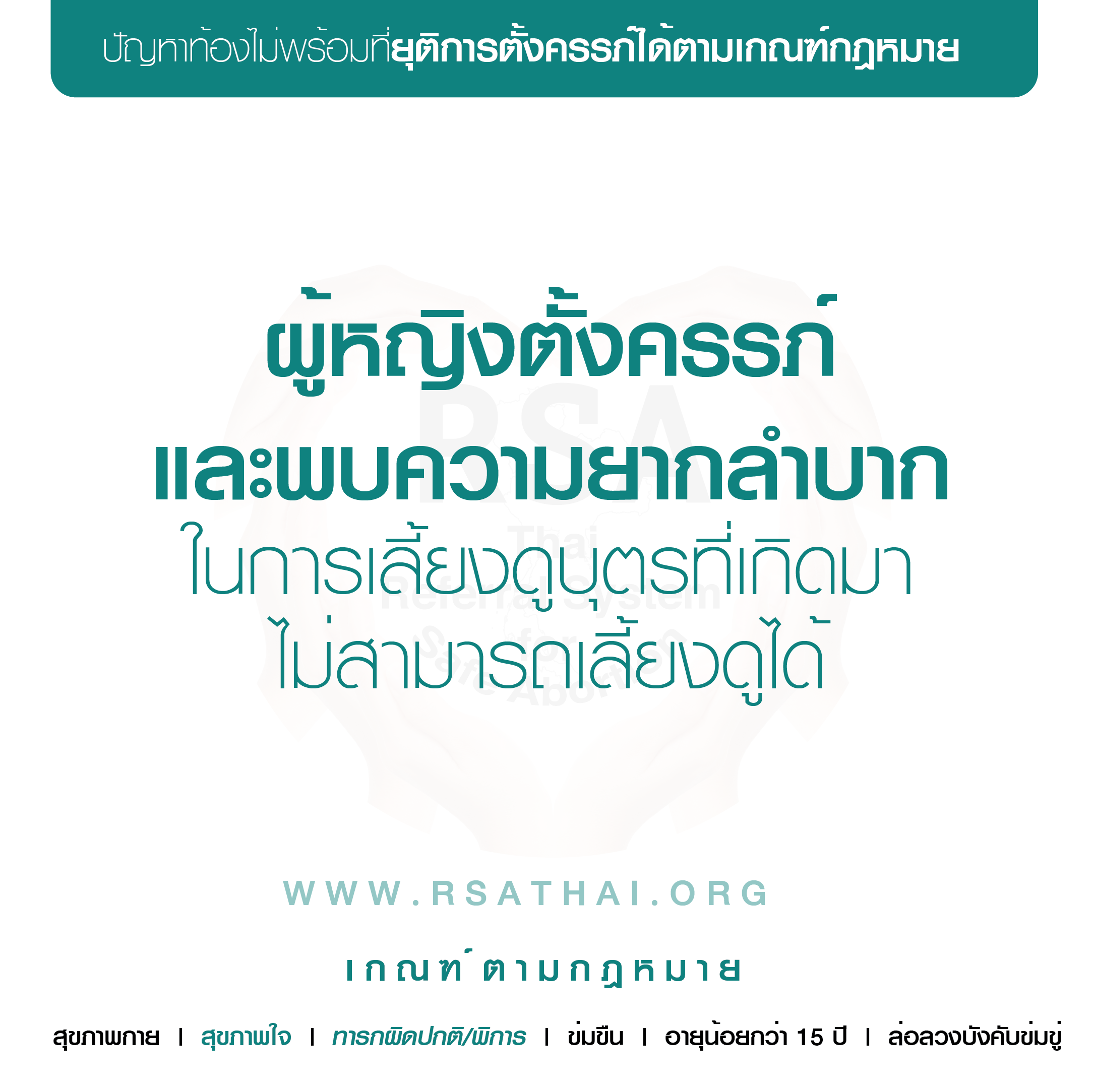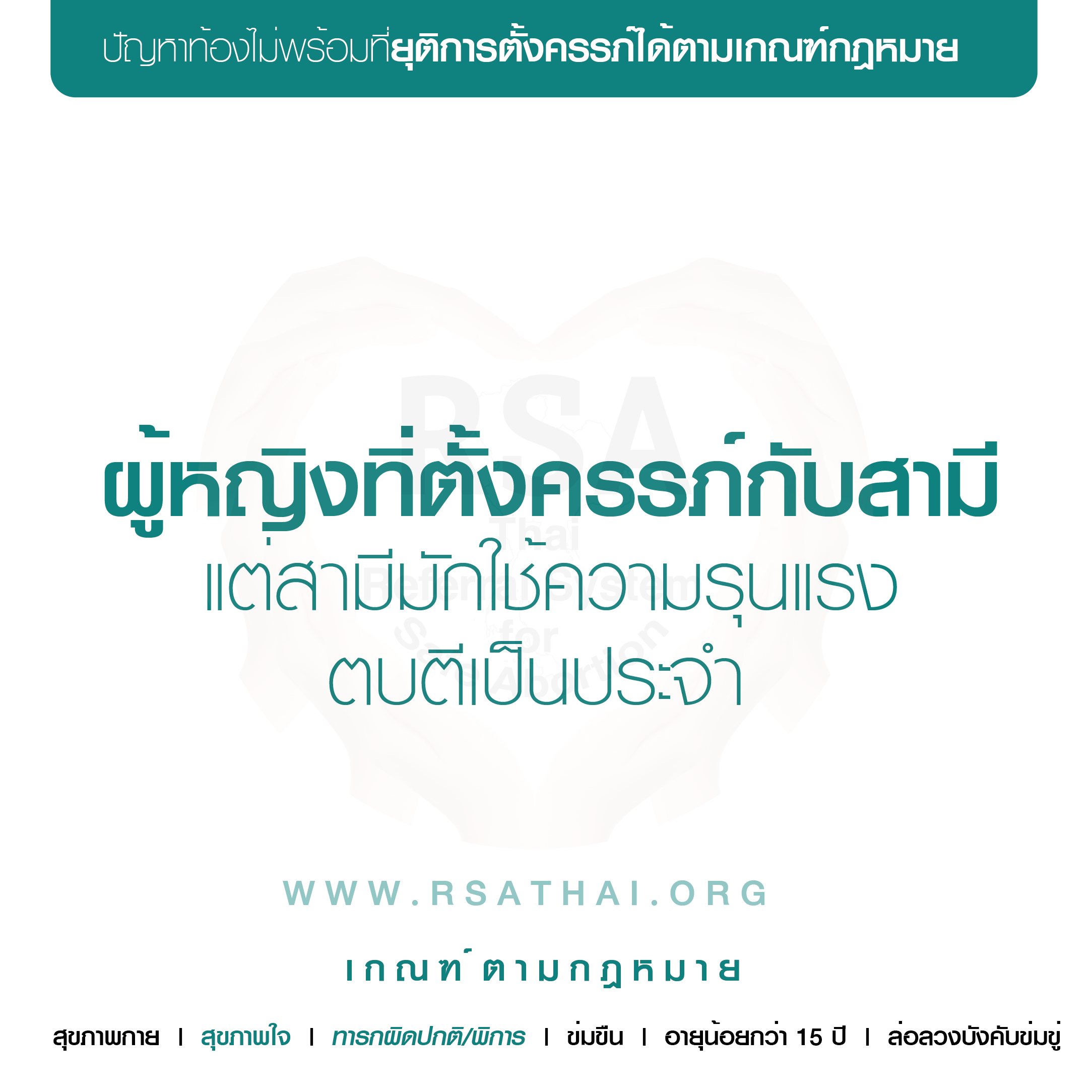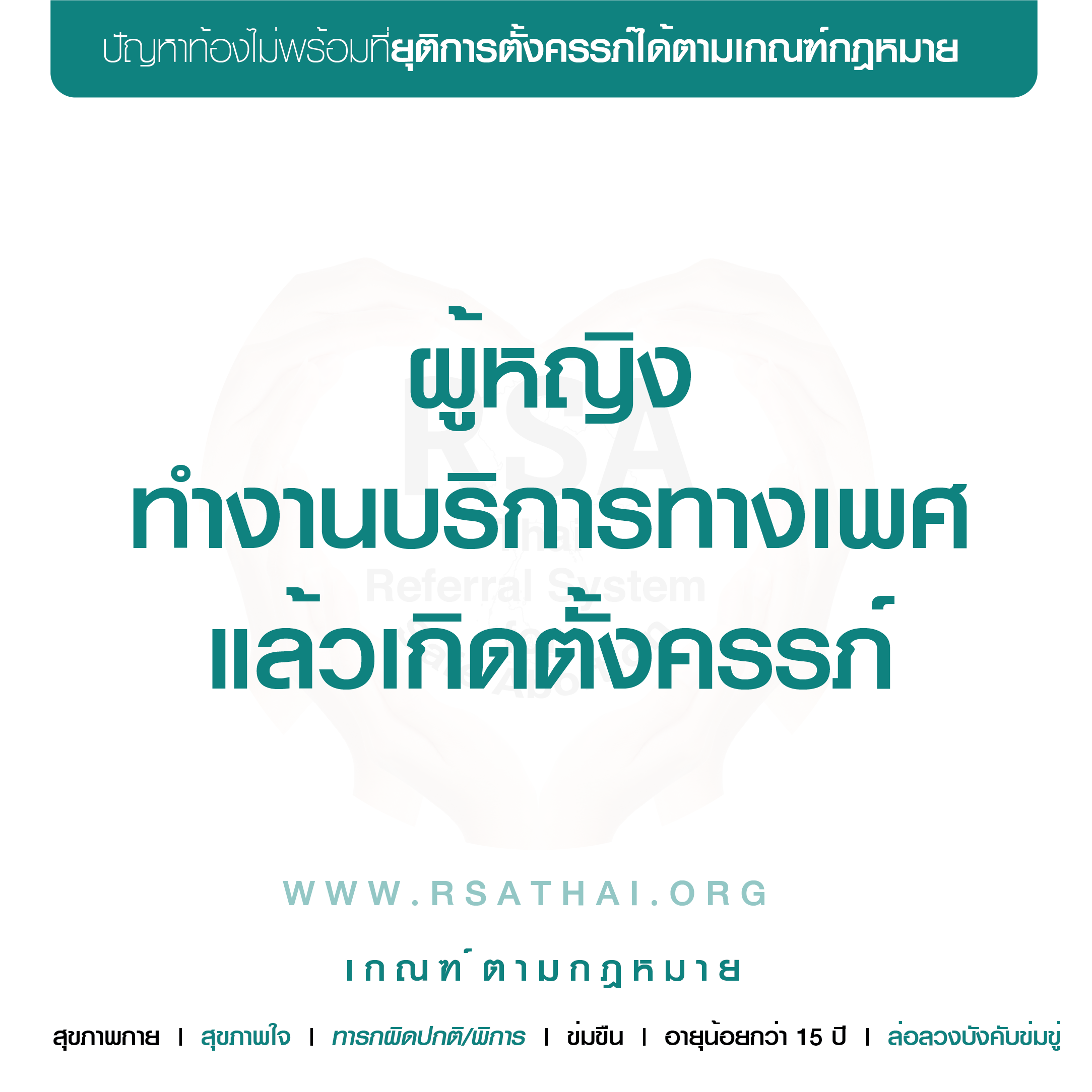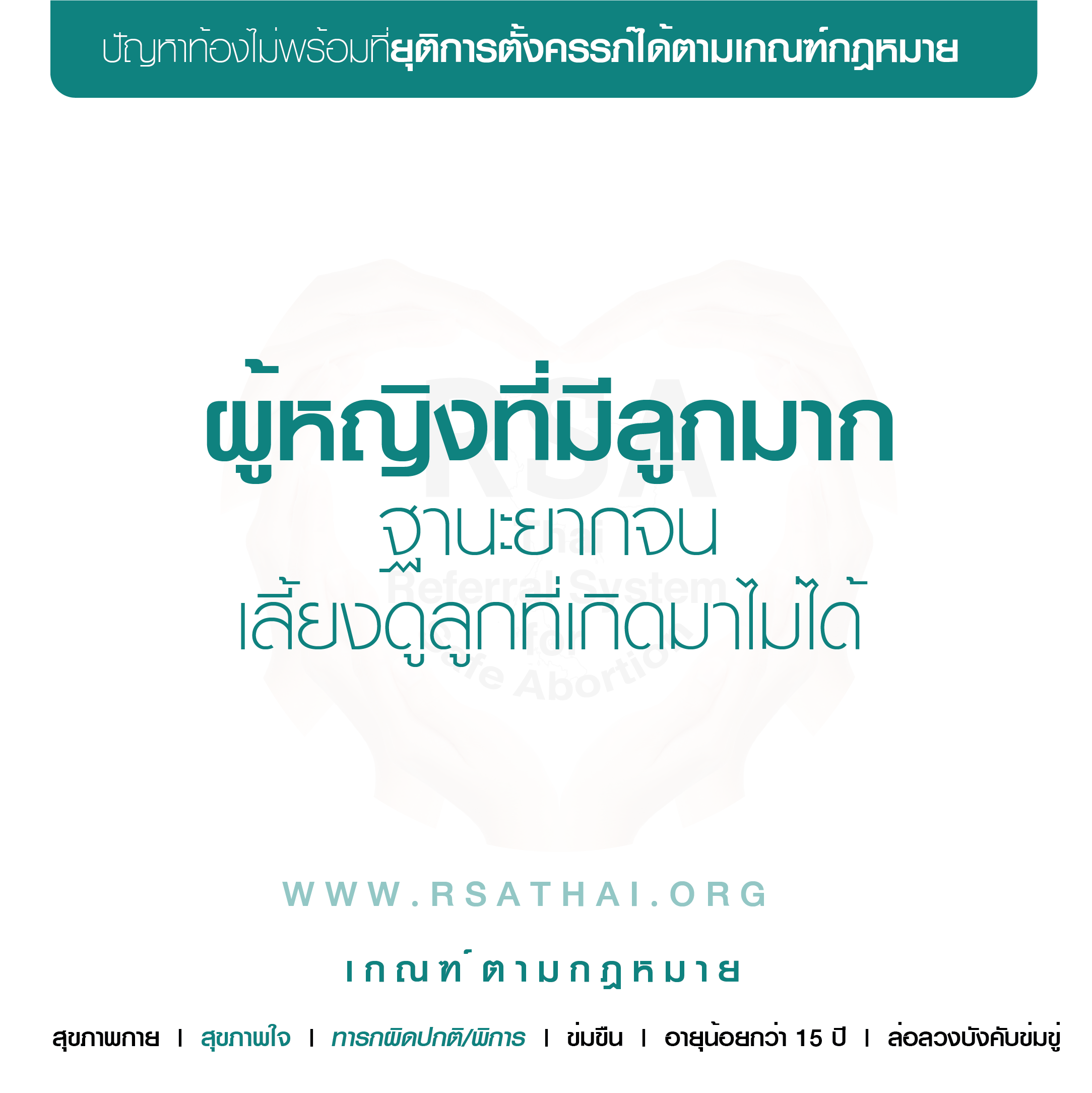 อายุ > 15 ปี ถูกข่มขืนแล้วท้องโดยคนในครอบครัว, คนใกล้ตัว, หรือผู้อื่น